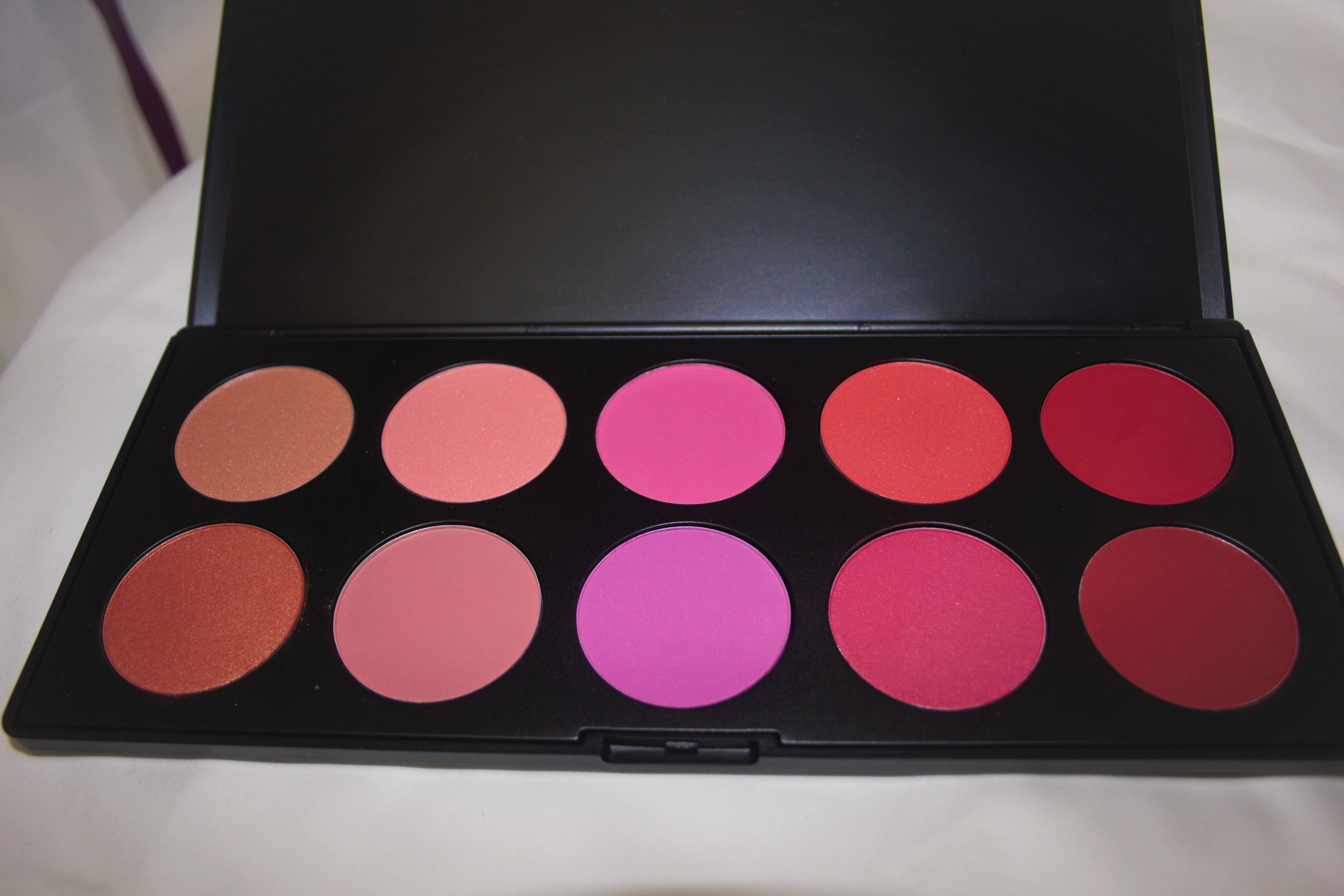 Glamorous blush palette has 10 gorgeous shades of blushes ranging from light and shimmery to bold and matte.